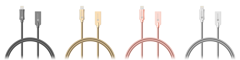 Kabel Lightning -> USB-A v unikátním designu s flexibilním prémiovým opletem z vysoce kvalitní nerezové oceli SAE304 a podporou proudového toku 2,1 A pro rychlé nabíjení a přenos dat