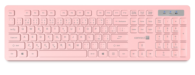 Klávesnice je výškově polohovatelná a nabízí nízký profil kláves. Myš disponuje rozlišením až 1600 DPI. Set klávesnice a myši využívá technologii jednoho nano příjímače, díky které Vám zajistí úsporu USB-A portů ve Vašem zařízení. Součástí balení jsou i originální alkalické tužkové baterie CONNECT IT (1x AA + 1x AAA). Samozřemostí je velmi snadná instalace, díky Plug & Play.