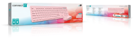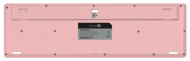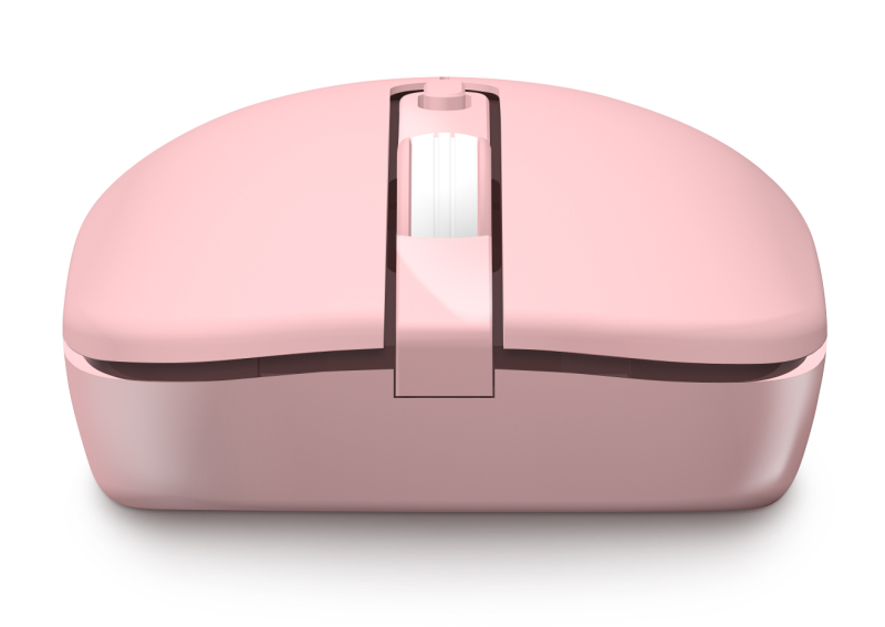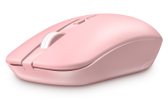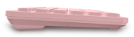Bezdrátová klávesnice a optická myš v elegantním ružovém designu, určena pro domácí i profesionální použití v kancelářích a firmách.