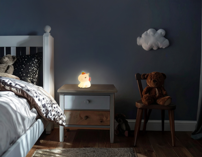Noční LED světlo ve tvaru jednorožce je ideální pomocník vhodný k osvětlení dětských pokojíčků. Světlo poskytuje příjemné teplé bílé světlo, které vás v noci neoslní.